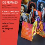 Expositions Prochainement Exposition Histoire(s) de femmesStudio DéclicAvec Ariane Pasco, Le Monde d’Arwen, Dr Bergman, JBCdu 08 Mars au 05 Avril 2025 10, rue Aristide Briand91150 Etampes Murs ouverts #69Le Lavo//Matikdu 14 février au 08 Mars 2025 20 boulevard du général d’armée Jean Simon75013 Paris Evènements passés Exposition Le Monde d’Arwen à l’Ile de Beautédu 15 janvier au 14 février 2025 Murs ouverts #66Le Lavo//Matikdu 29 Novembre au 21 Décembre 2024 Le rose prend soin de vousVente aux enchères, association Gustave Roussydu 9 au 10 Novembre 2024 Aux Arts! CitoyensVente aux enchères, association Faire ma P’Artdu 7 au 11 Juin 2024 11e festival de Street Painting de ToulonVille de Toulon14-15 Juin 2024 Just’in TimeArt & music Festival29 Juin 2024 Instants aux fémininsExposition duo avec Alex ZAu Bloom Du 16 au 29 Avril 2024 Le Lavo//Matik fête ses 10 ansExposition collective au Lavo//MatikDu 29 Mars au 27 Avril 2024 A table !!!Exposition collective au Lavo//MatikDu 10 Février au 2 Mars 2024 GynécéesExposition solo au Lavo//MatikDu 2 au 17 Novembre 2023 Murs ouvertsExposition collective au Lavo//Matik Du 27 mai au 10 Juin 2023 Murs ouverts – les 9 ans du LavoExposition collective au Lavo//Matik Du 1 au 22 Avril 2023 Ode au fémininExposition collective à la galerie de Carqueiranne Du 14 au 25 Mars 2022